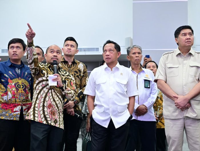 Nampak Kadiskominfo Makassar Muhammad Roem dengan serius menjelaskan sejumlah fitur atau layanan data dan informasi kepada Mendagri Tito Karnavian dan Menteri PKP Maurarar Sirait yang juga sama seriusnya menyaksikan.