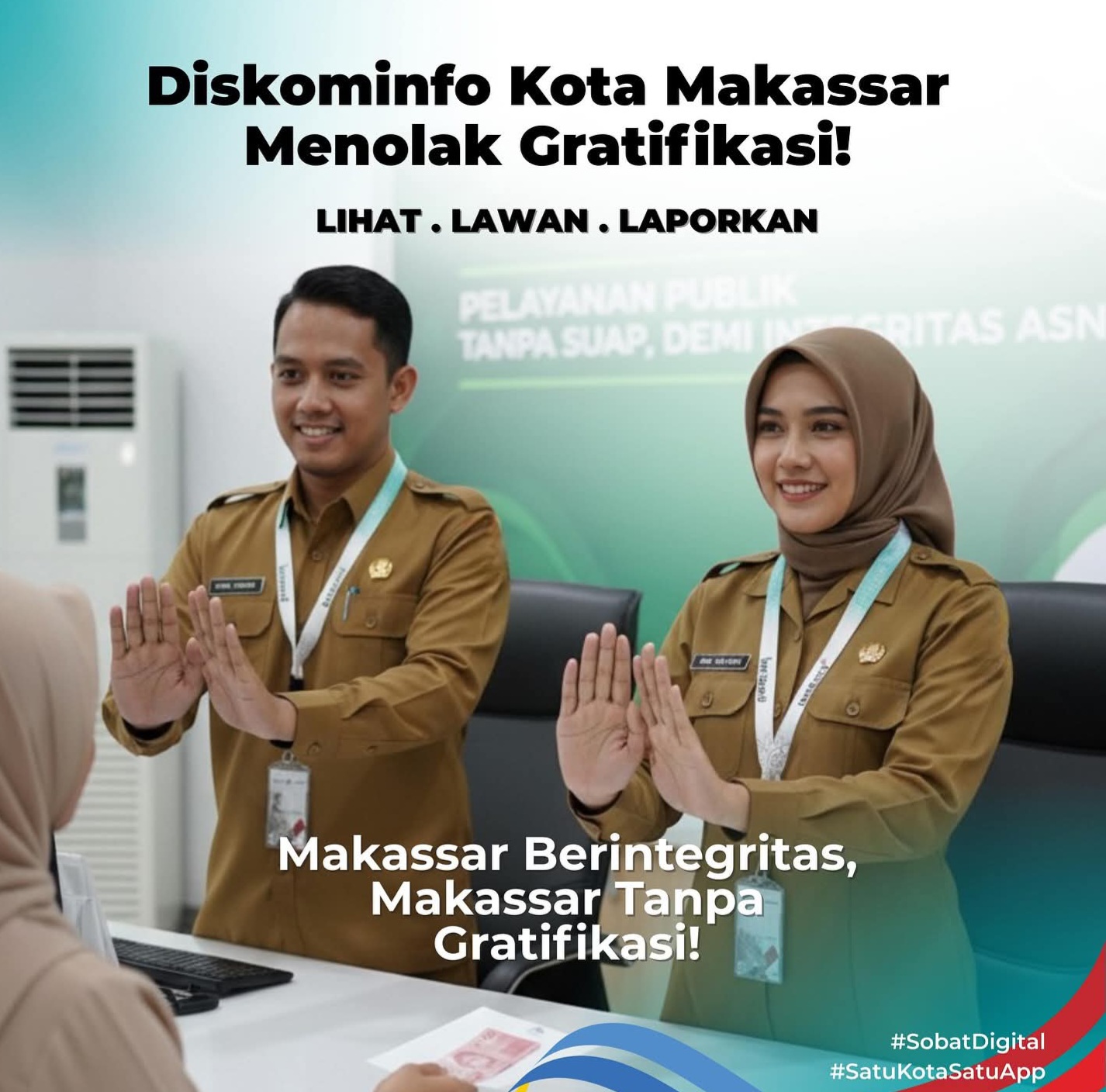 “Mari bersama Lihat. Lawan. Laporkan. setiap bentuk gratifikasi demi pemerintahan yang bersih dan transparan,” tulis Diskominfo Kota Makassar dalam unggahan tersebut.
