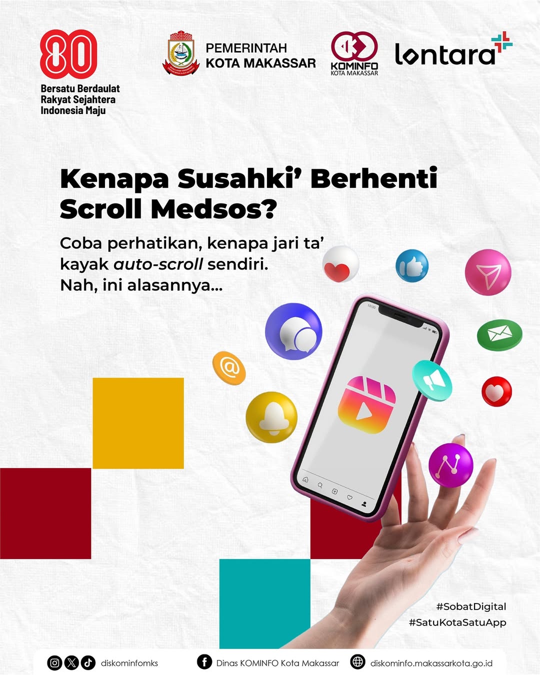 “Pernah-ki’ merasa jari-ta kayak auto-scroll sendiri di medsos?” tulis Diskominfo Makassar dalam unggahannya.
