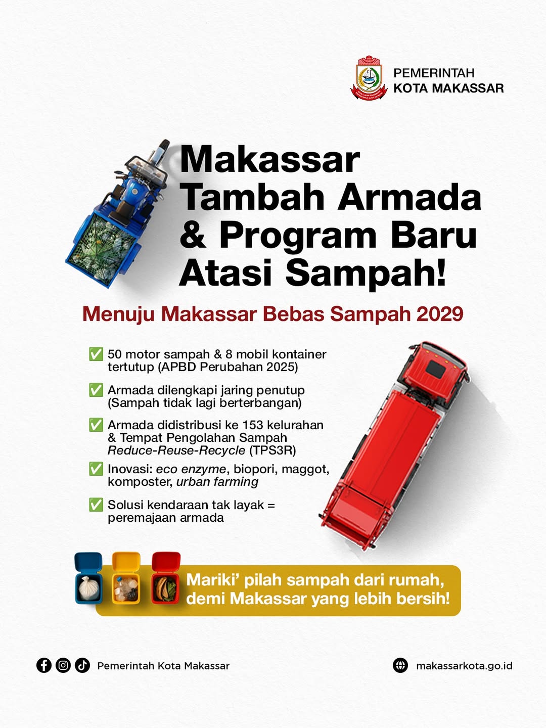 “Kami menyiapkan armada baru dan berbagai inovasi untuk memastikan Makassar lebih bersih dan sehat. Ini bagian dari komitmen Pemkot Makassar menuju Makassar Bebas Sampah 2029,” ujar perwakilan Pemkot Makassar.